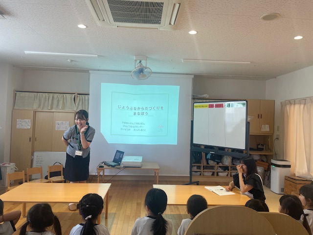 第2回開催である7月18日には、年少児(15名)へ「じゃがいもについて」をテーマにじゃがいも料理やじゃがいもの栄養をJA山梨信連の職員が紹介しました。